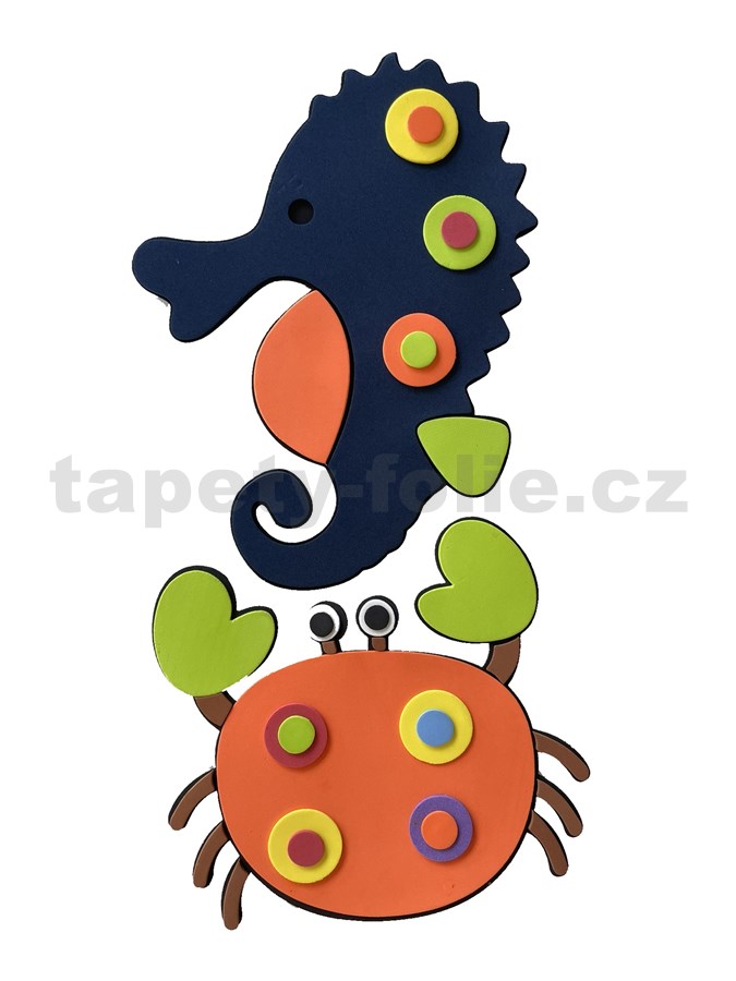 3D pěnová dekorace na zeď mořský koník a krab 48 x 25 cm