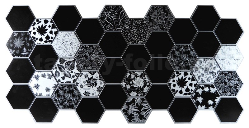 Obkladové 3D PVC panely rozměr 973 x 492 mm, tloušťka 0,2 mm, černo-bílý Floral