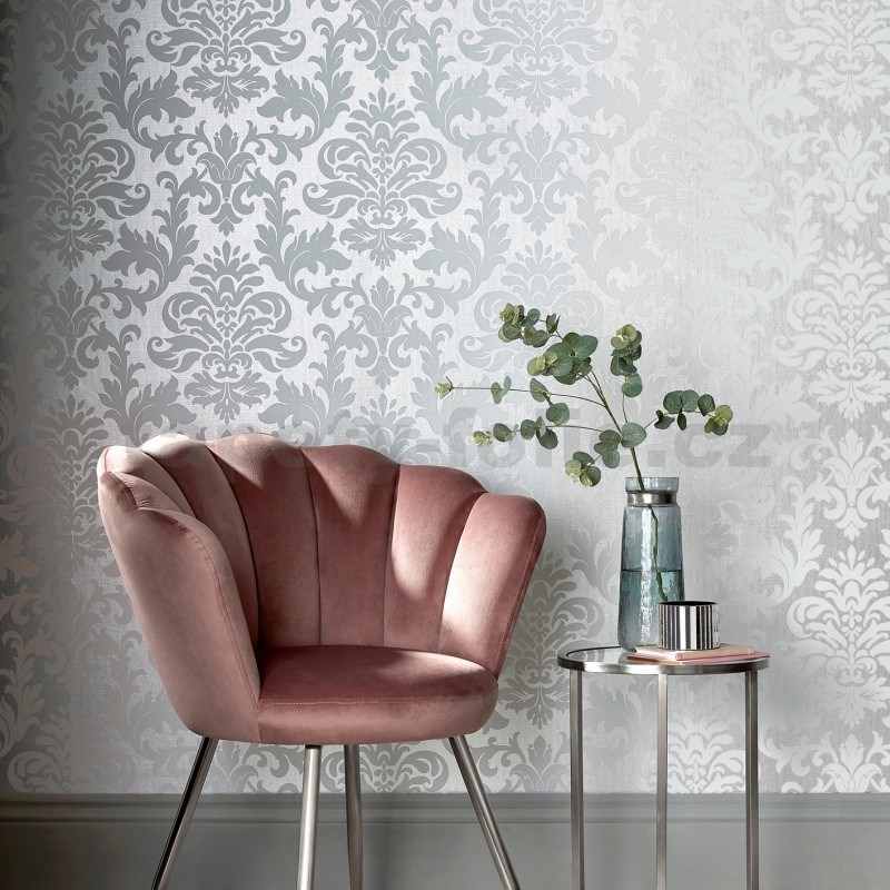 Papírové tapety na zeď IMPOL zámecký vzor bílý na stříbrném podkladu POSLEDNÍ ROLE