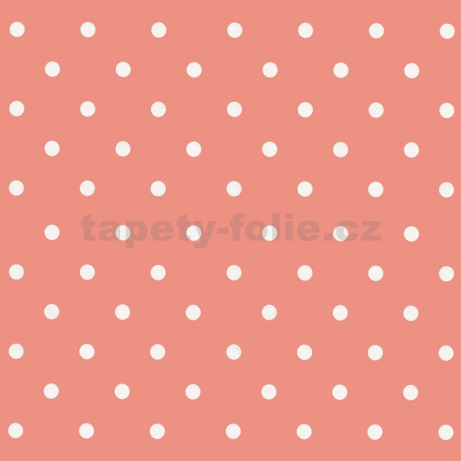 Samolepící fólie puntíky bílé na růžovém podkladu - 45 cm x 15 m AKCE