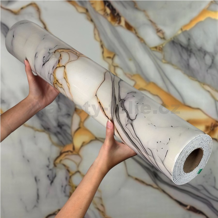 Samolepící panel na zeď na pěnovém podkladu mramor šedo-zlatý rozměr 280 x 60 cm