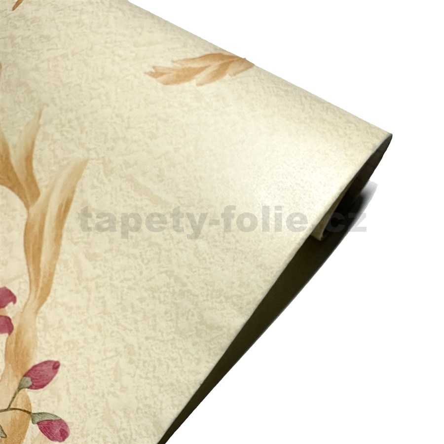 Samolepící tapety květy s ornamenty na béžové omítce 45 cm x 10 m