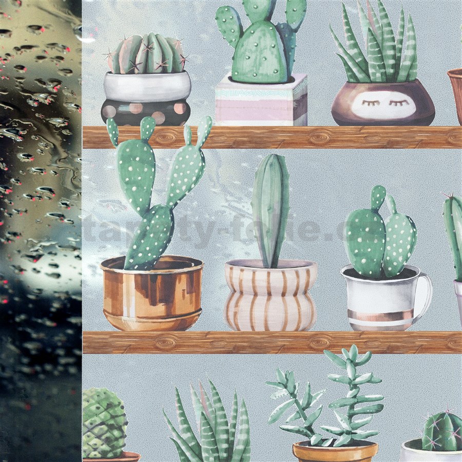 Statická fólie transparentní kaktusy - 67,5 cm x 15 m
