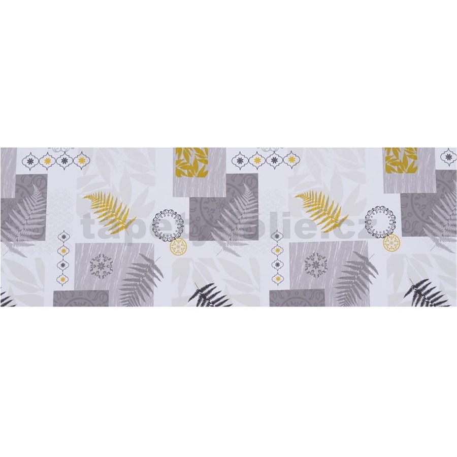 Ubrus metráž kapradí šedo-žluté s ornamenty
