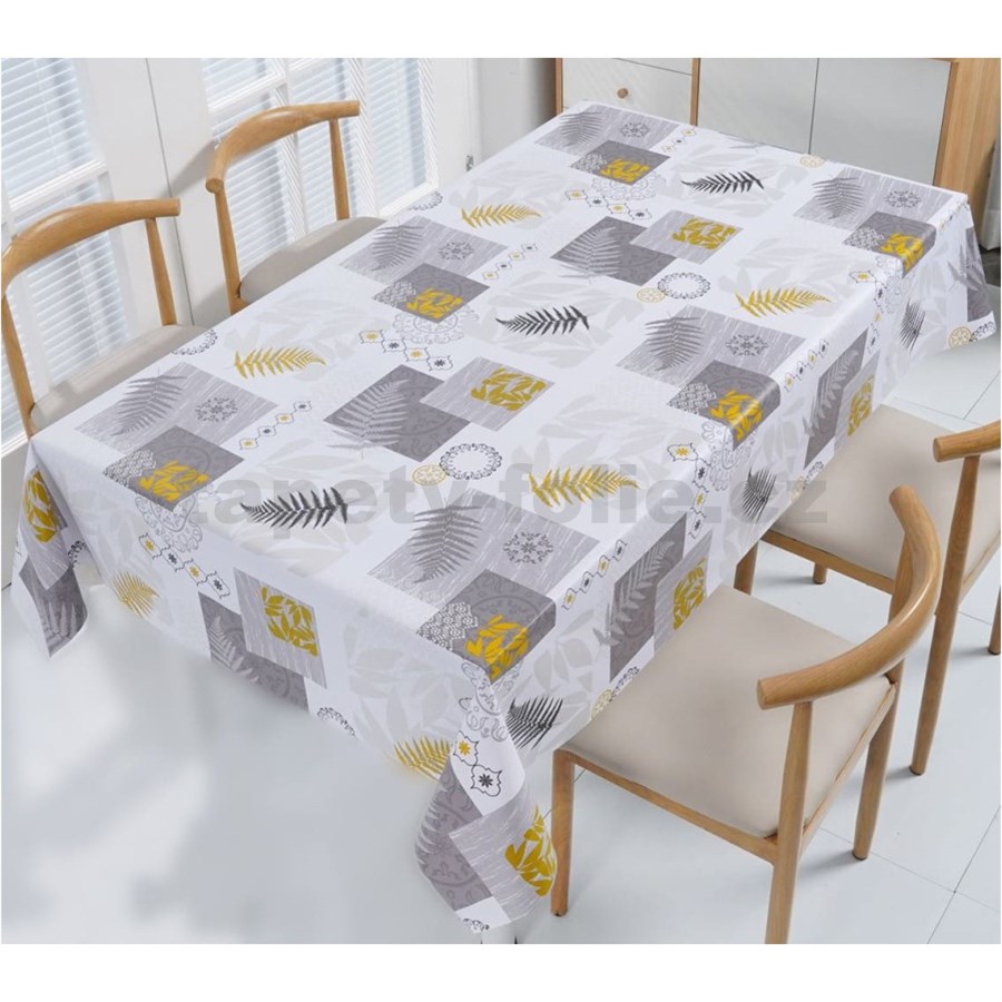 Ubrusy návin 20 m x 140 cm kapradí šedo-žluté s ornamenty