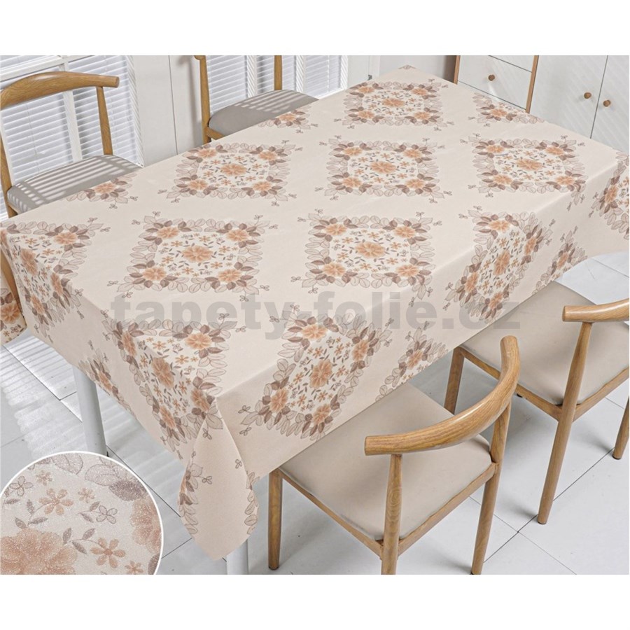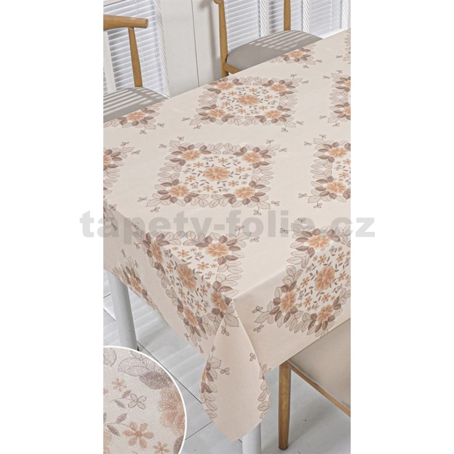 Ubrusy návin 20 m x 140 cm květinový vzor na béžovém podkladu