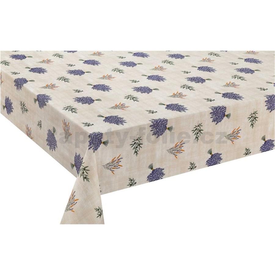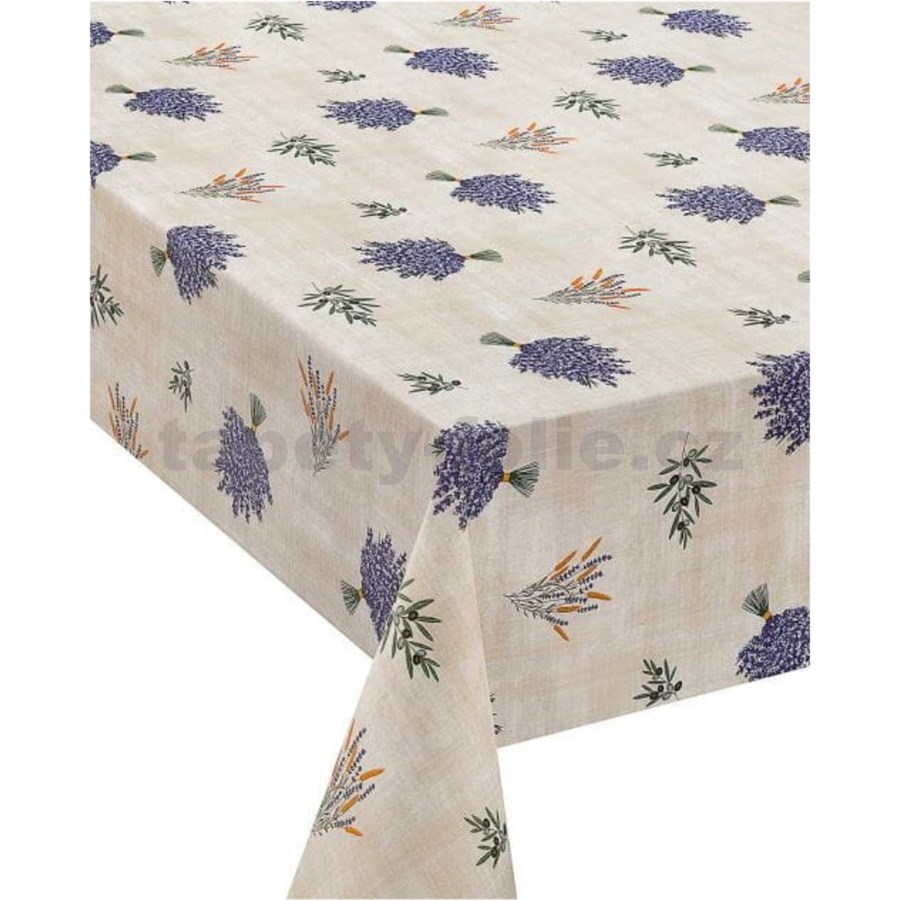 Ubrusy návin 20 m x 140 cm levandule a olivy na hnědém podkladu