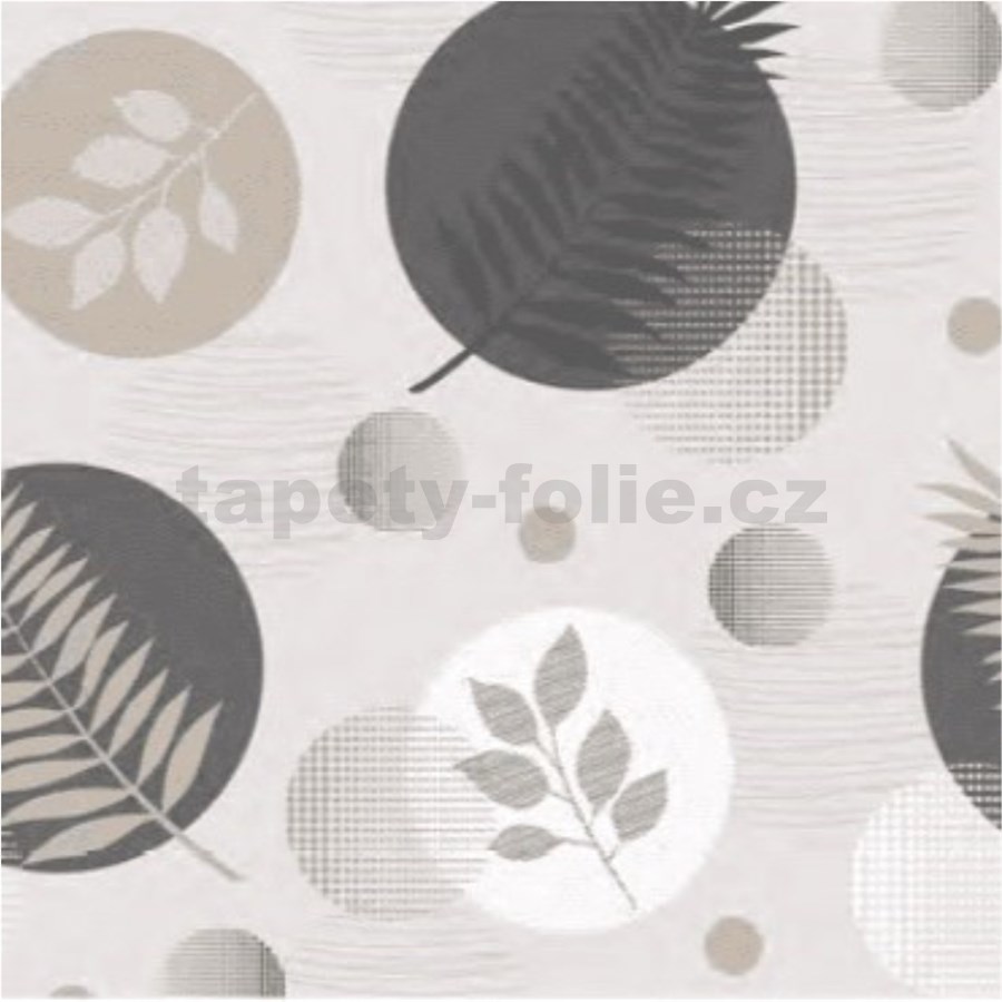 Ubrusy návin 20 m x 140 cm listy šedo-béžové