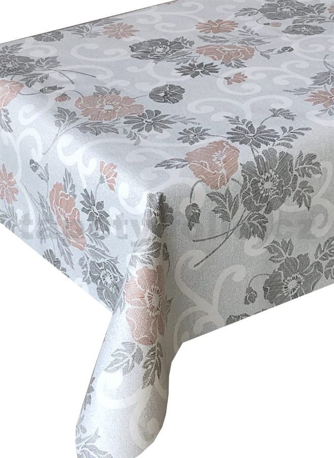Ubrusy návin 20 m x 140 cm vlčí máky šedé s ornamenty