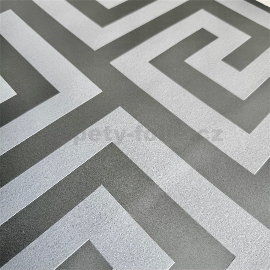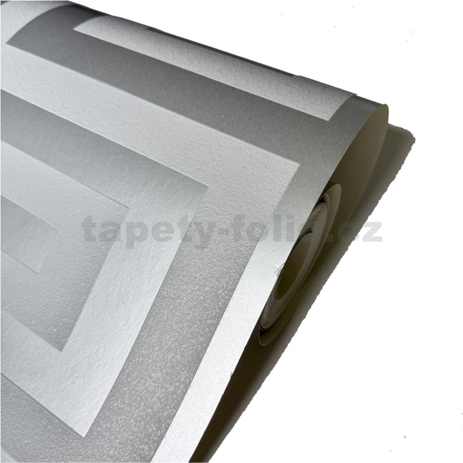 Vinylové tapety na zeď řecký klíč stříbrno-šedý