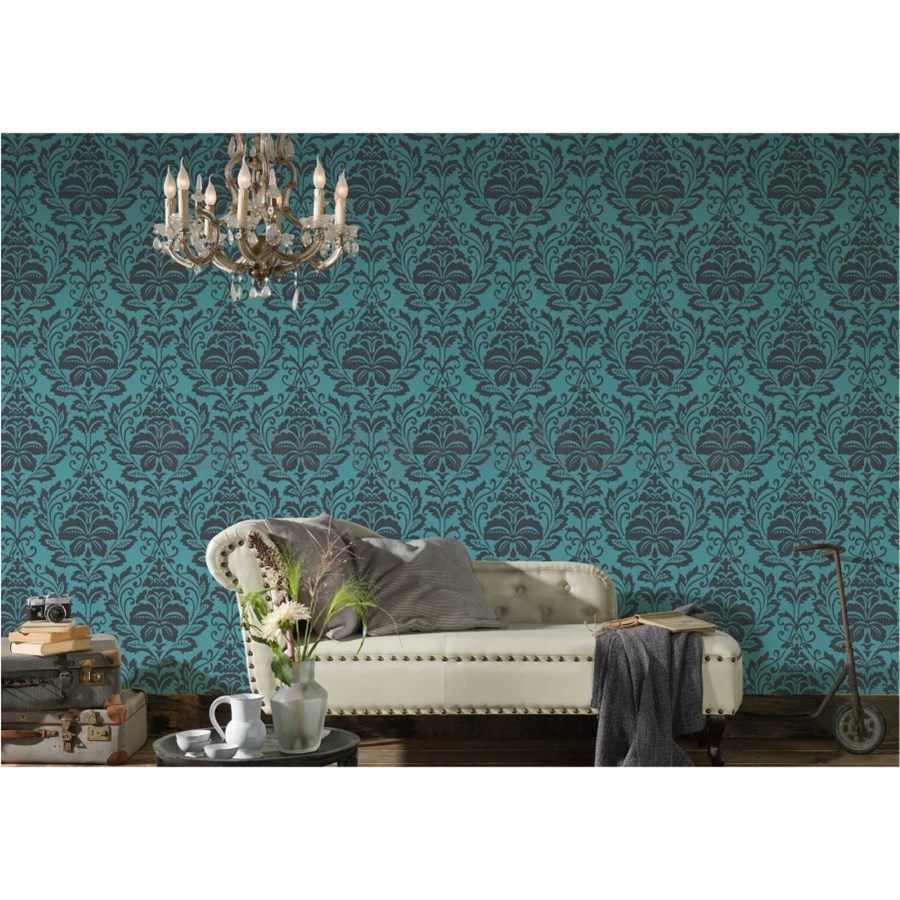 Vliesové tapety na zeď Attractive barokní ornamentální vzor tyrkysovo-šedý - POSLEDNÍ KUSY