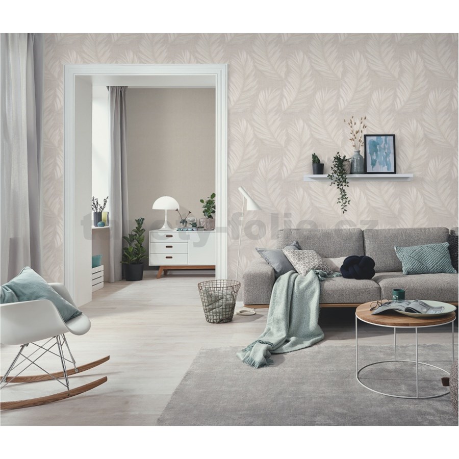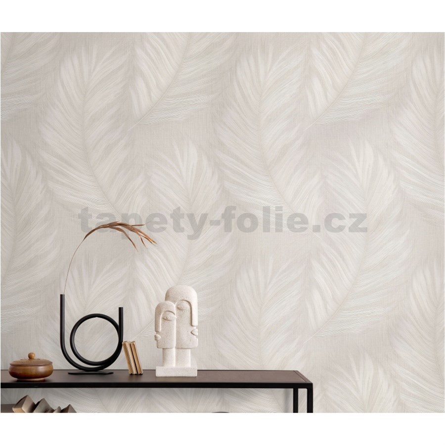 Vliesové tapety na zeď Aurora peříčka béžové na béžovém podkladu