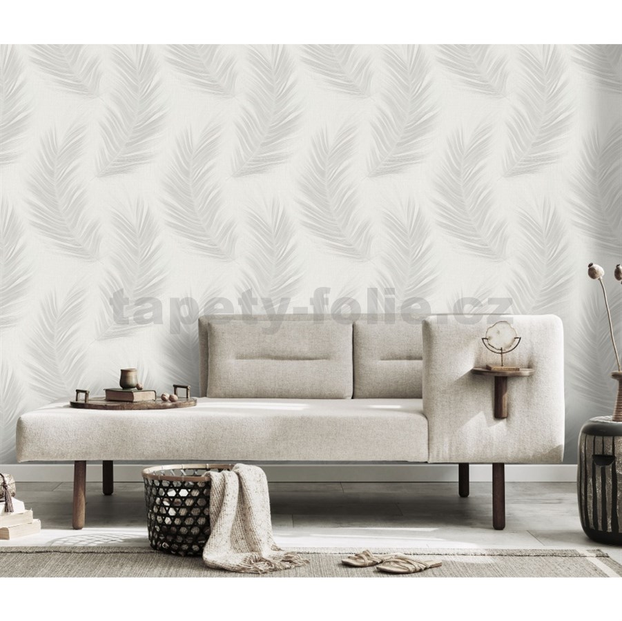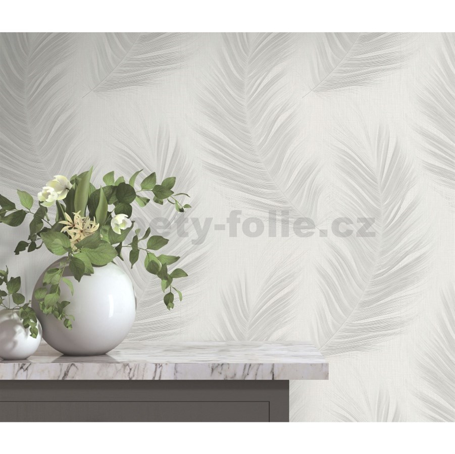 Vliesové tapety na zeď Aurora peříčka bílé na bílém podkladu