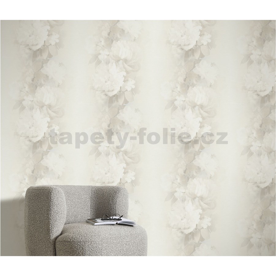 Vliesové tapety na zeď Aurora popínavé květy na krémovém podkladu