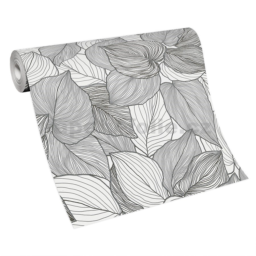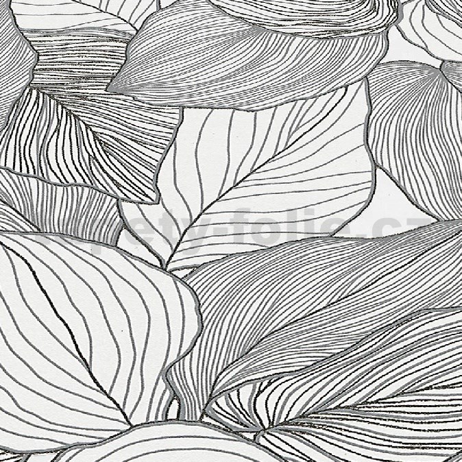 Vliesové tapety na zeď Collage listy černé s glitterovou konturou