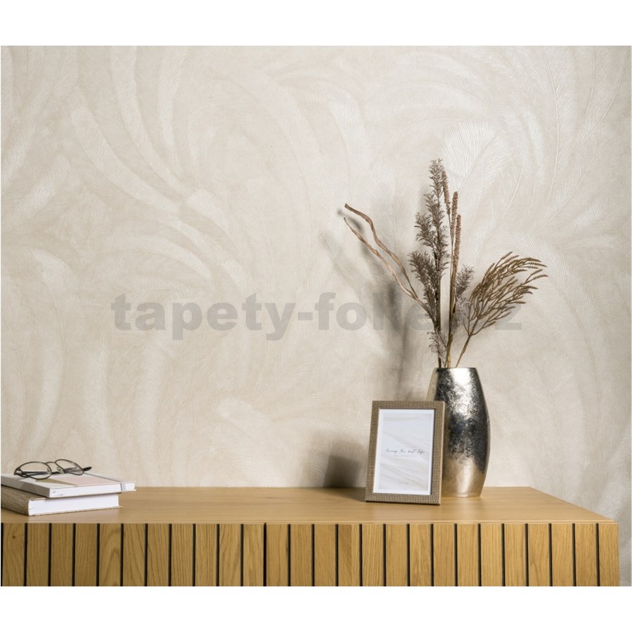 Vliesové tapety na zeď Elysium peříčka krémové - POSLEDNÍ KUSY