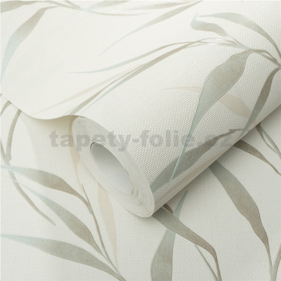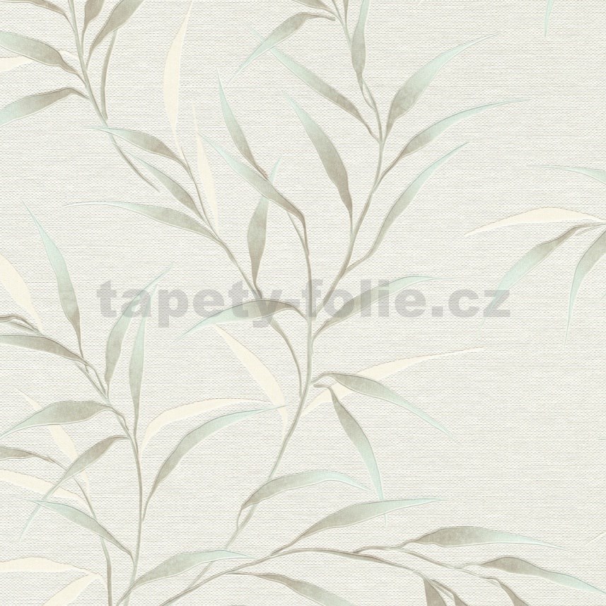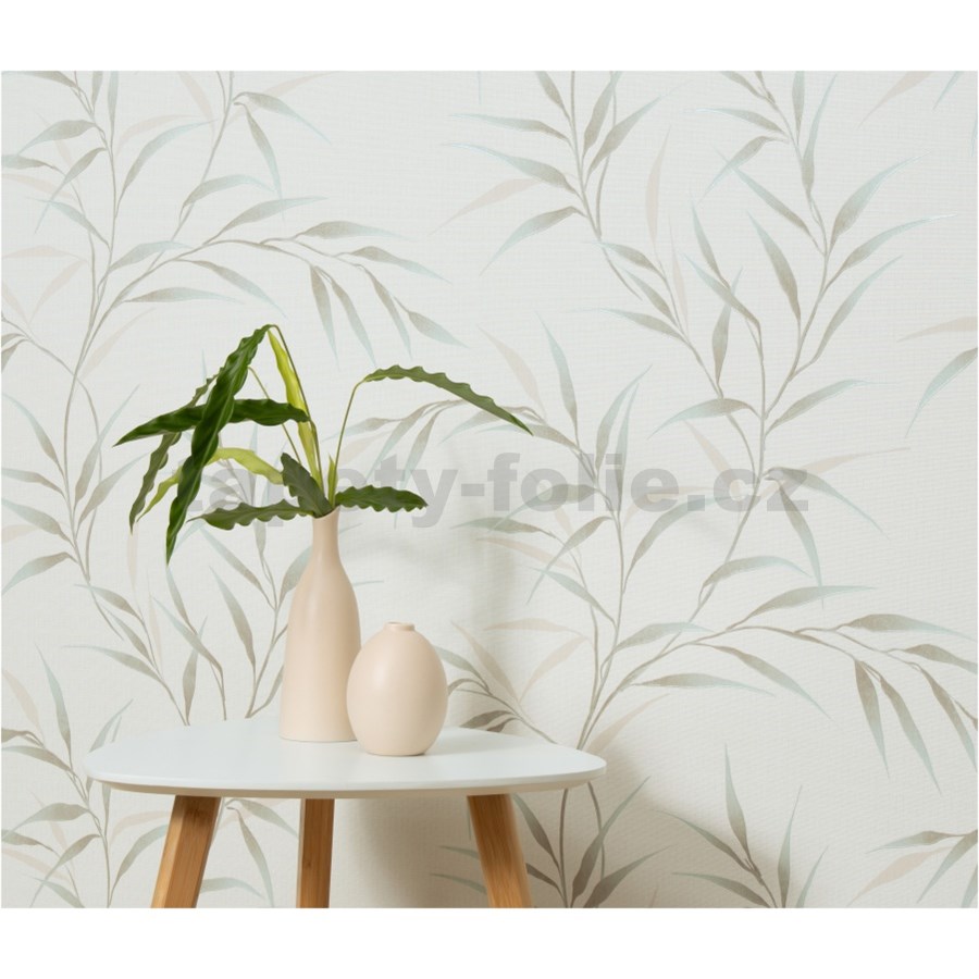 Vliesové tapety na zeď GMK Fashion for walls 5 lístky modro-béžové na bílém podkladu
