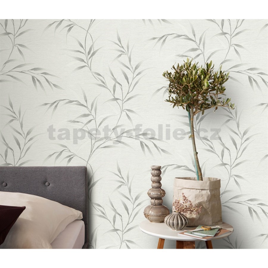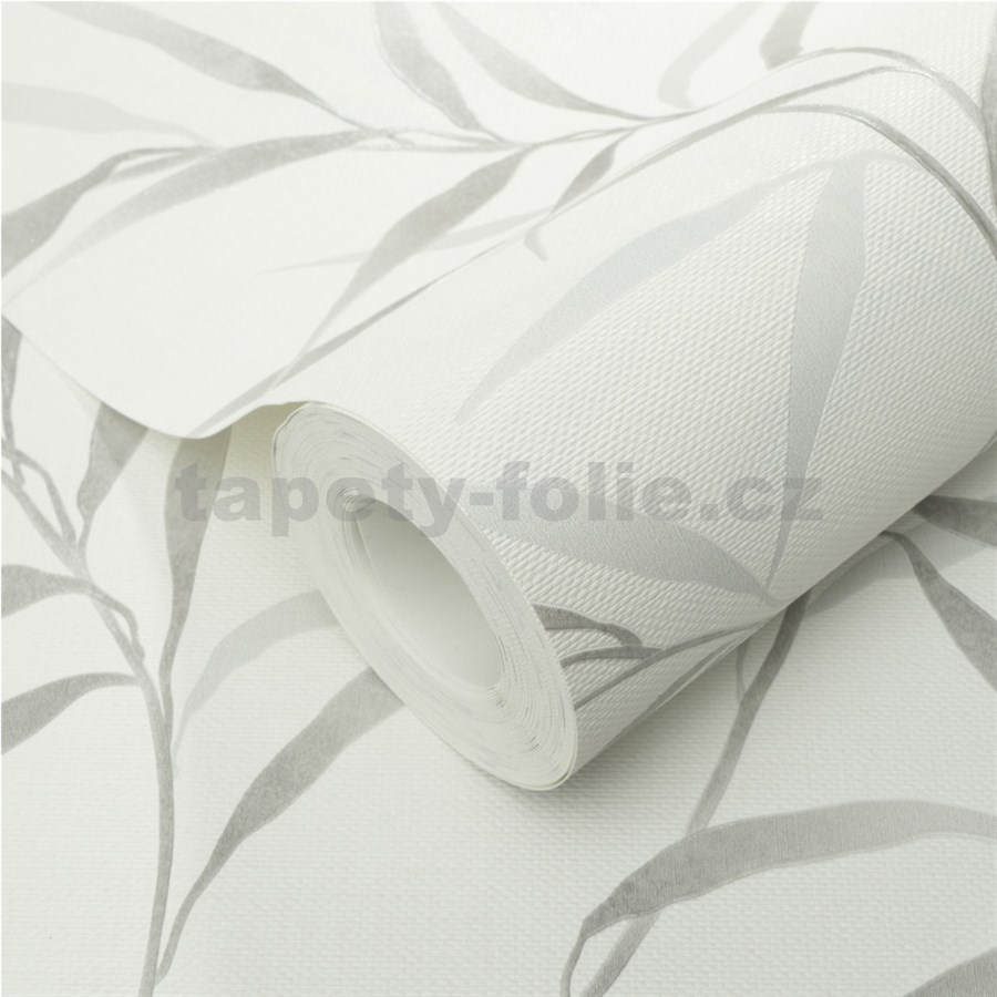 Vliesové tapety na zeď GMK Fashion for walls 5 lístky stříbrné na bílém pokladu