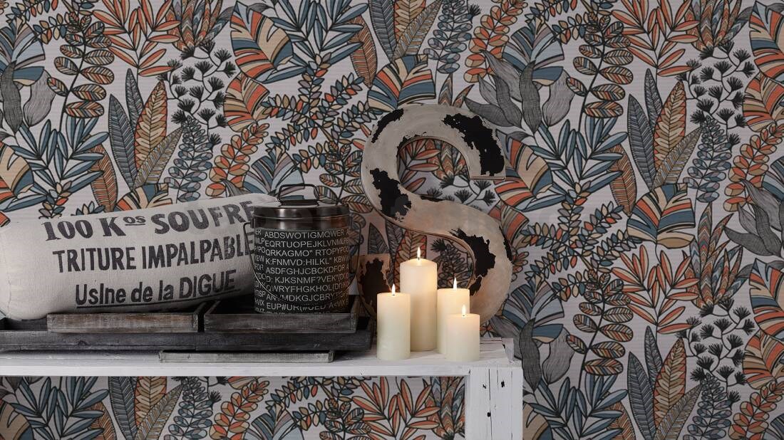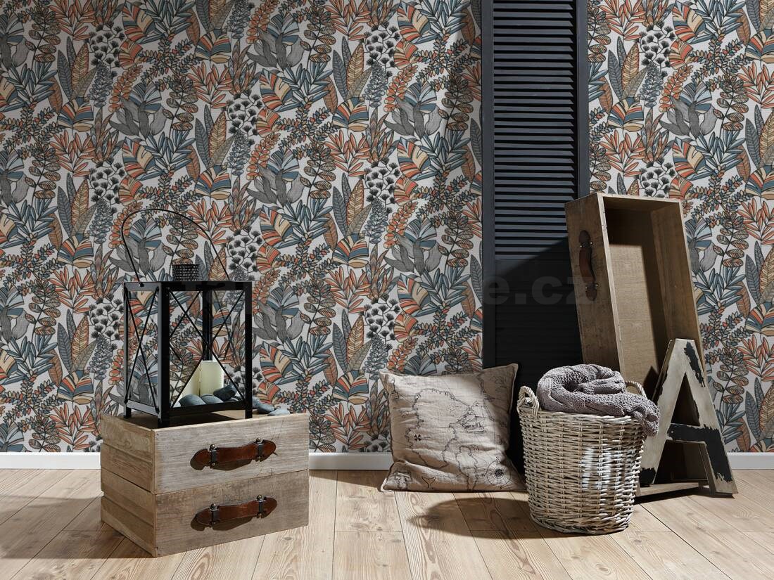 Vliesové tapety na zeď IMPOL Antigua barevné stylizované listy - POSLEDNÍ KUSY