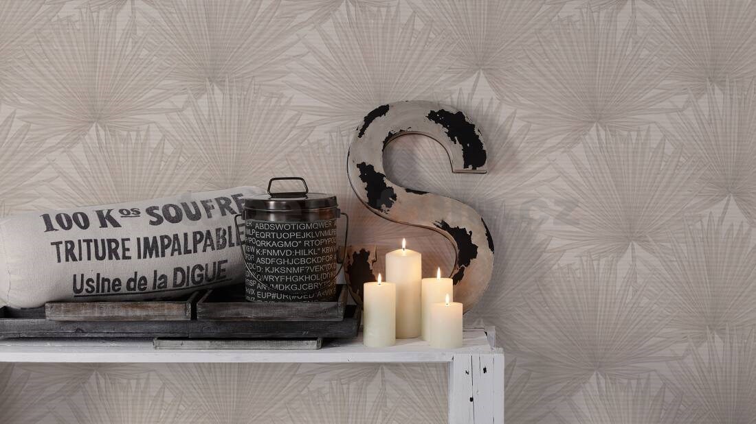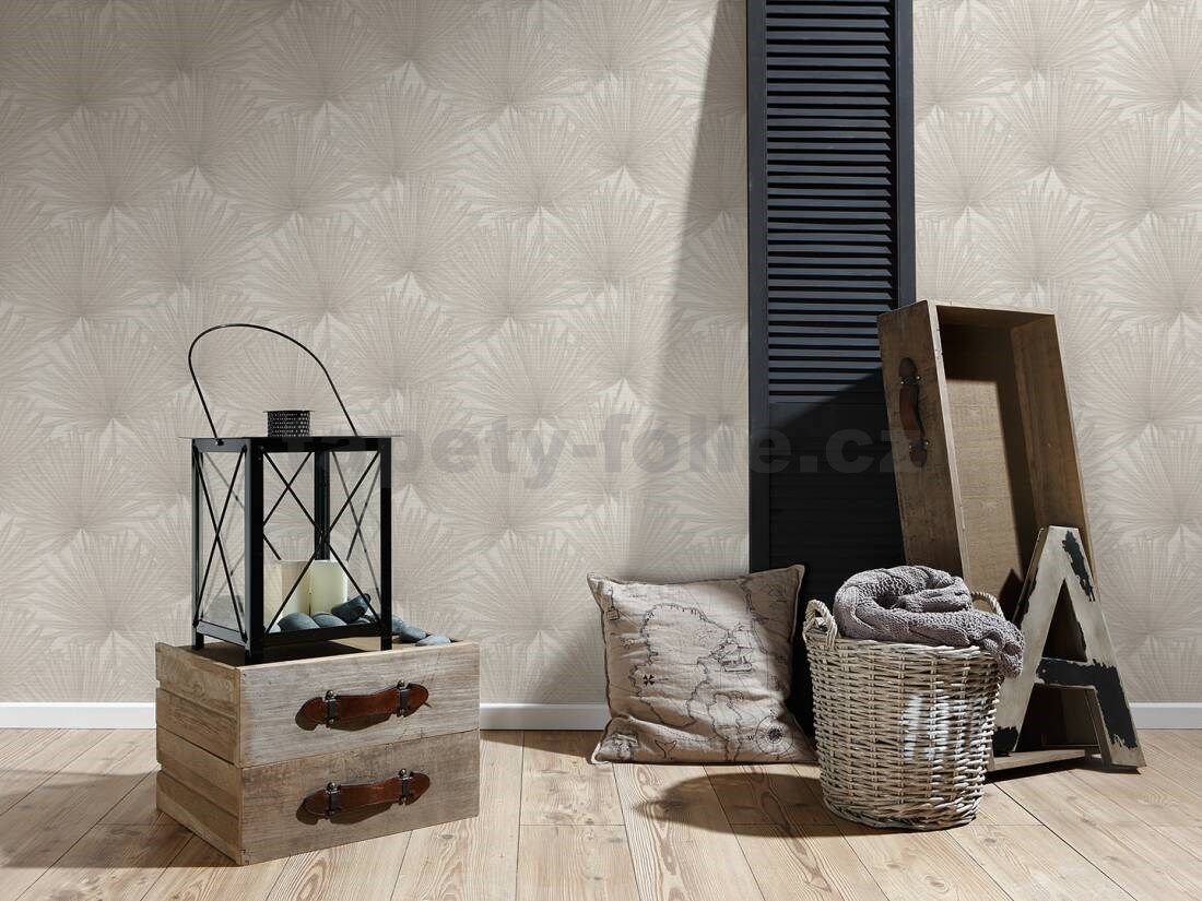 Vliesové tapety na zeď IMPOL Antigua palmové listy hnědé na béžovém podkladu