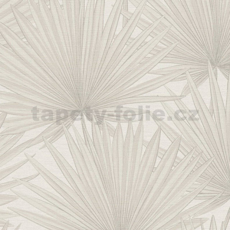 Vliesové tapety na zeď IMPOL Antigua palmové listy šedobéžové na bílém podkladu