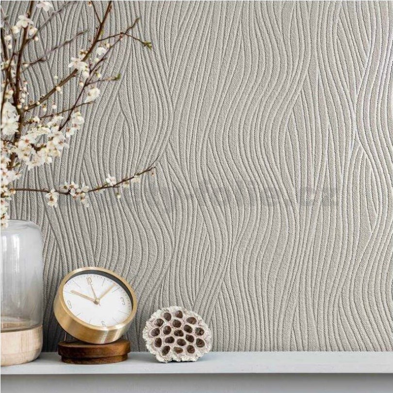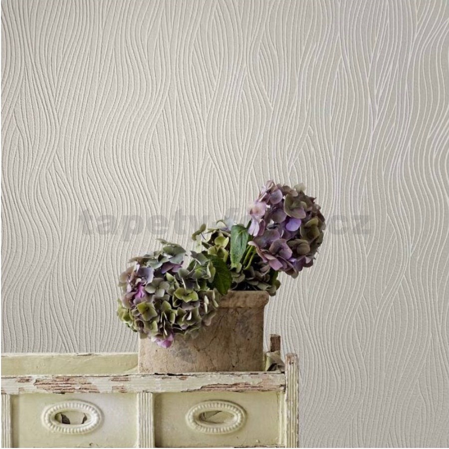Vliesové tapety na zeď IMPOL Kylie vlnovky béžové s metalickou spárou