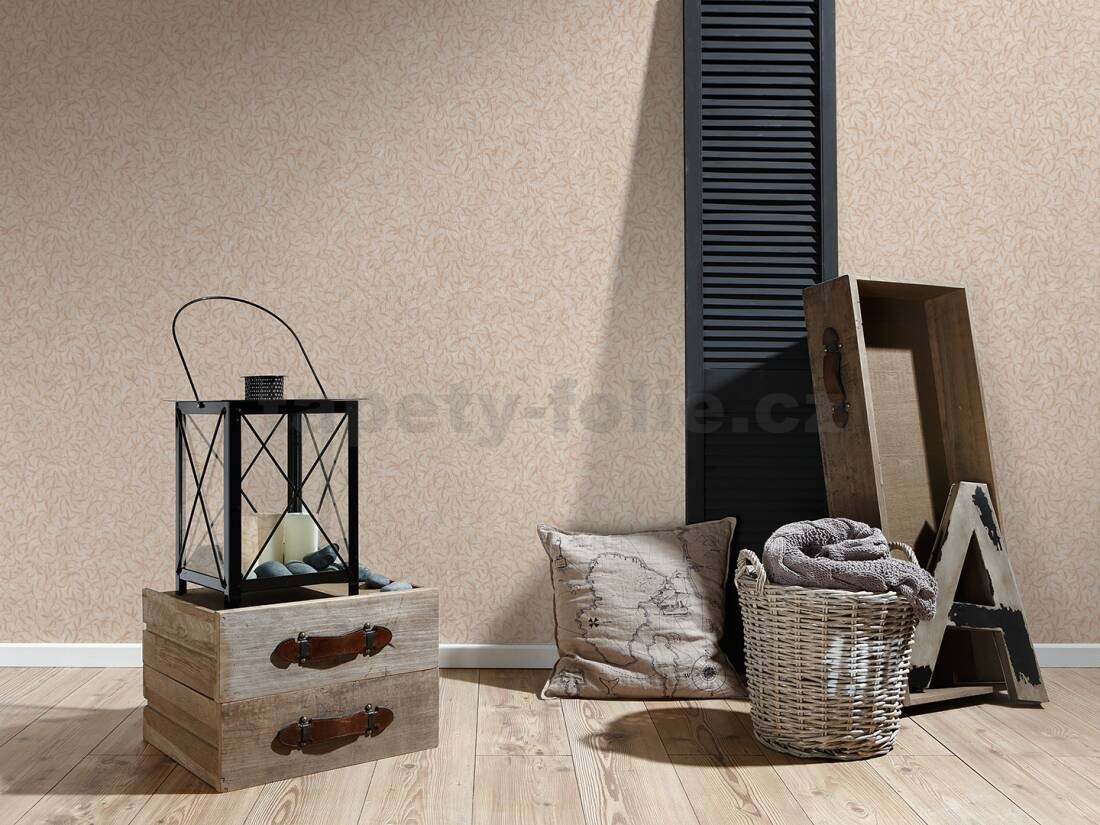 Vliesové tapety na zeď IMPOL Terra drobné lístky na béžovém podkladu