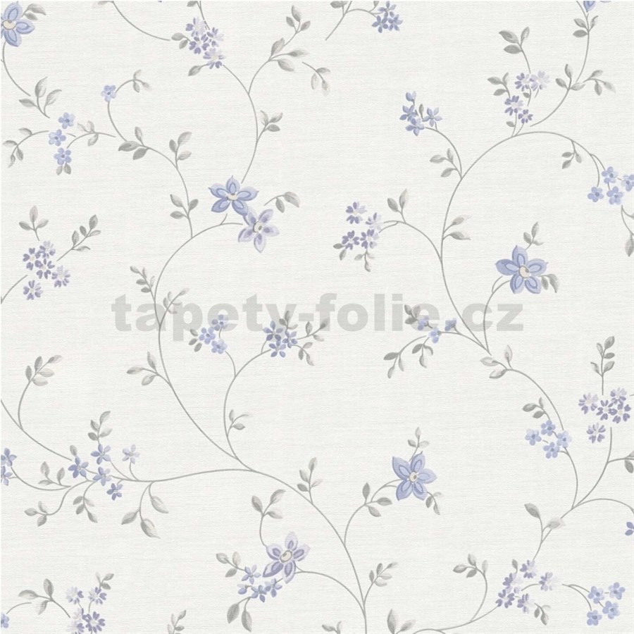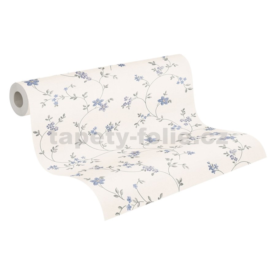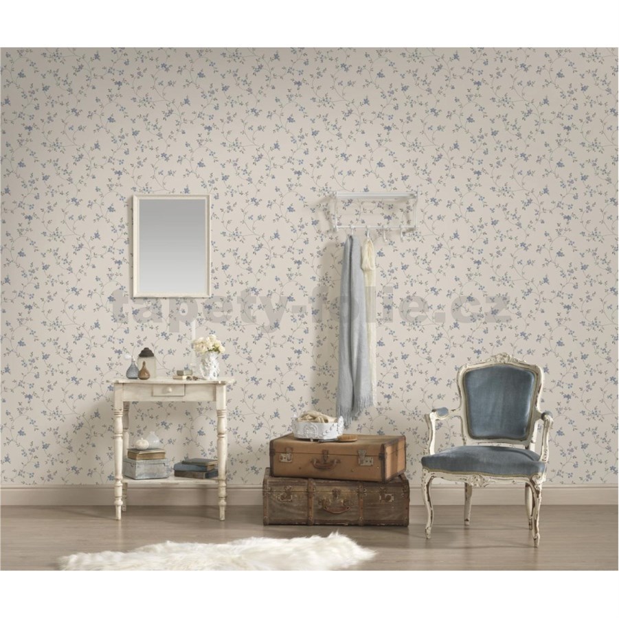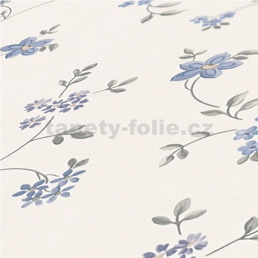 Vliesové tapety na zeď Maison Charme stylizované modré květy na krémovém podkladu