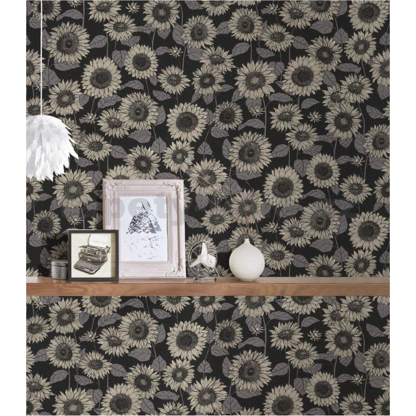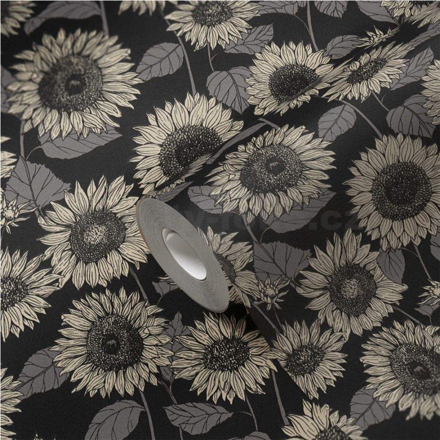 Vliesové tapety na zeď New Life slunečnice na černém podkladu - POSLEDNÍ KUSY