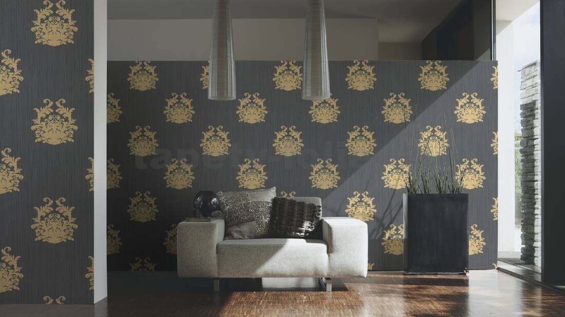 Vliesové tapety na zeď Nobile ornamenty zlaté na šedém podkladu - POSLEDNÍ KUSY