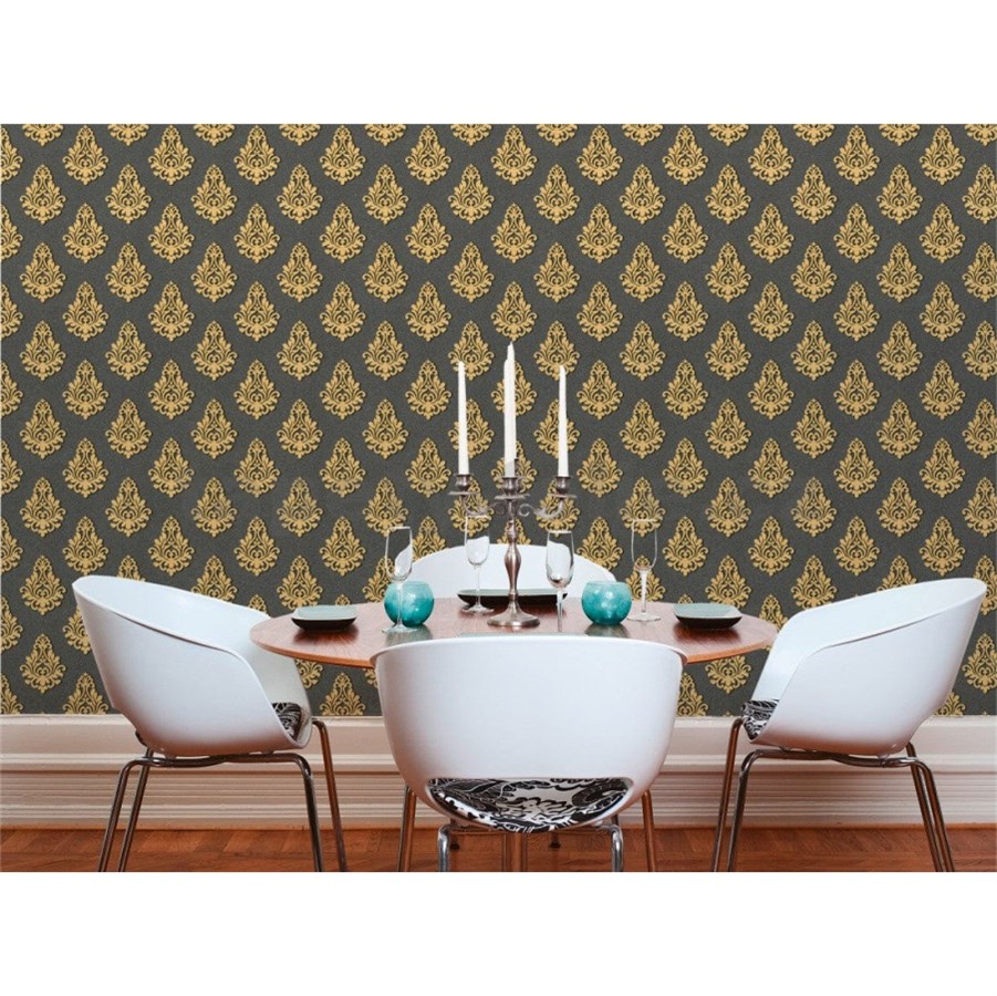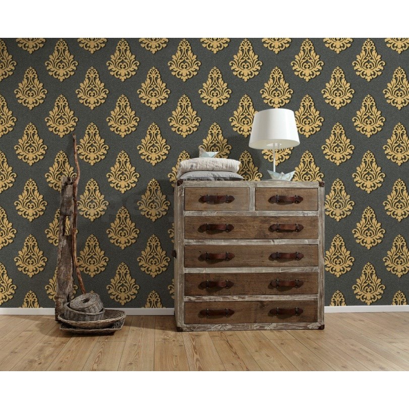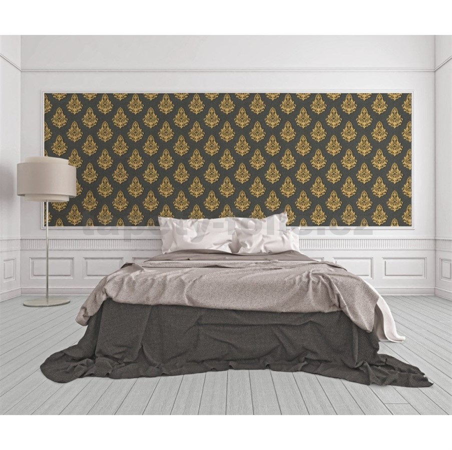Vliesové tapety na zeď Nobile zlatý ornament na černém podkladu šíře 0,70m - POSLEDNÍ KUSY
