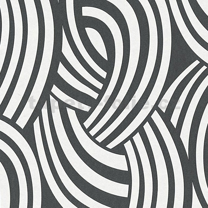 Vliesové tapety na zeď Pigment Art Deco Waves černo-bílý MEGA ROLL - POSLEDNÍ KUSY