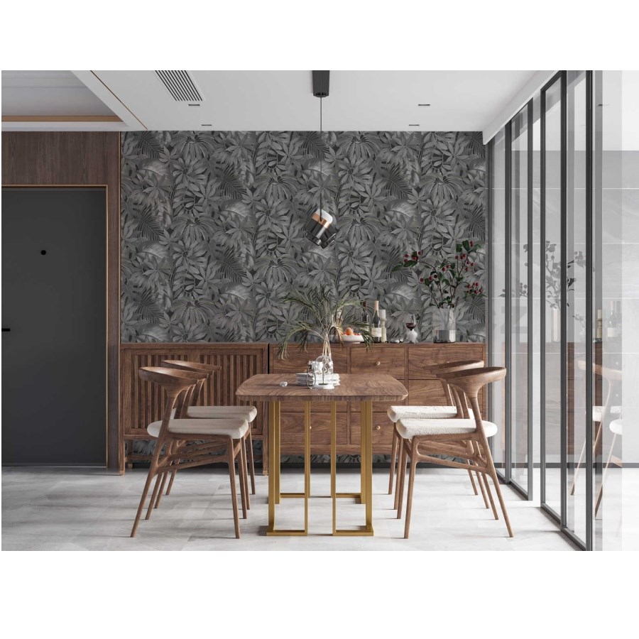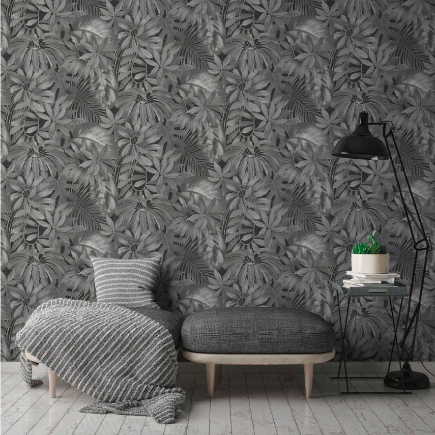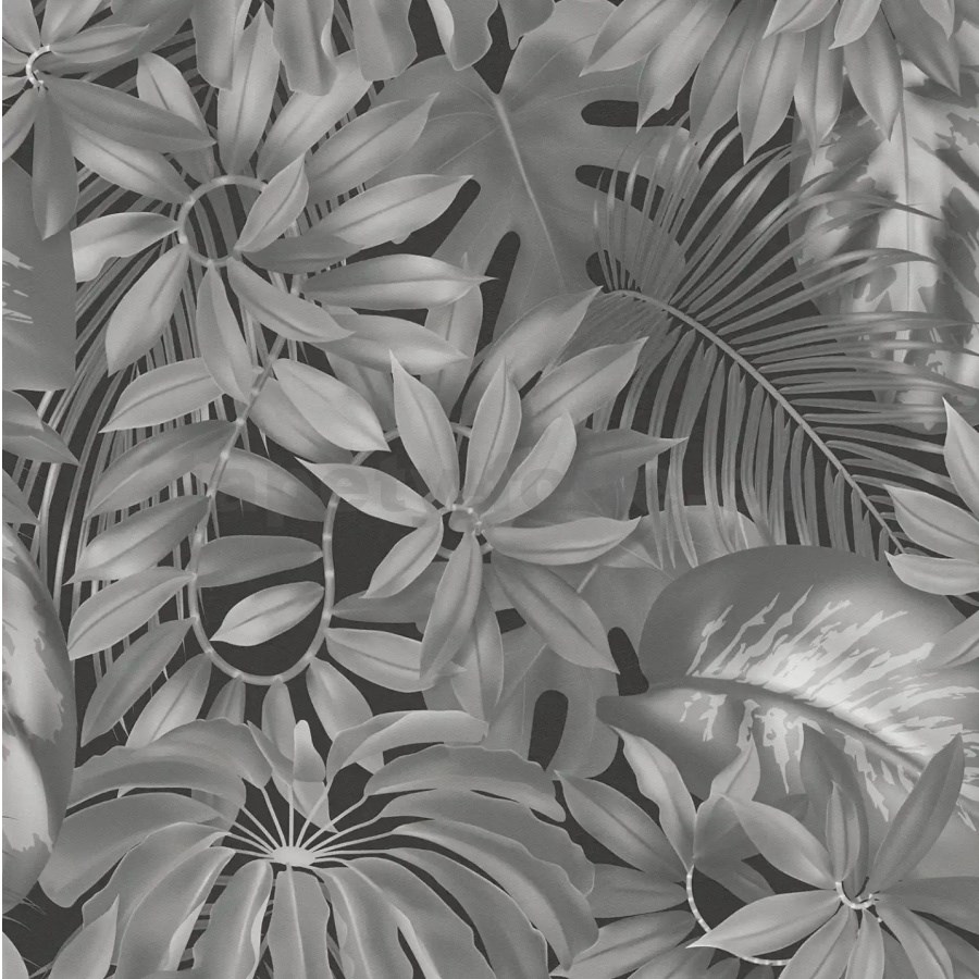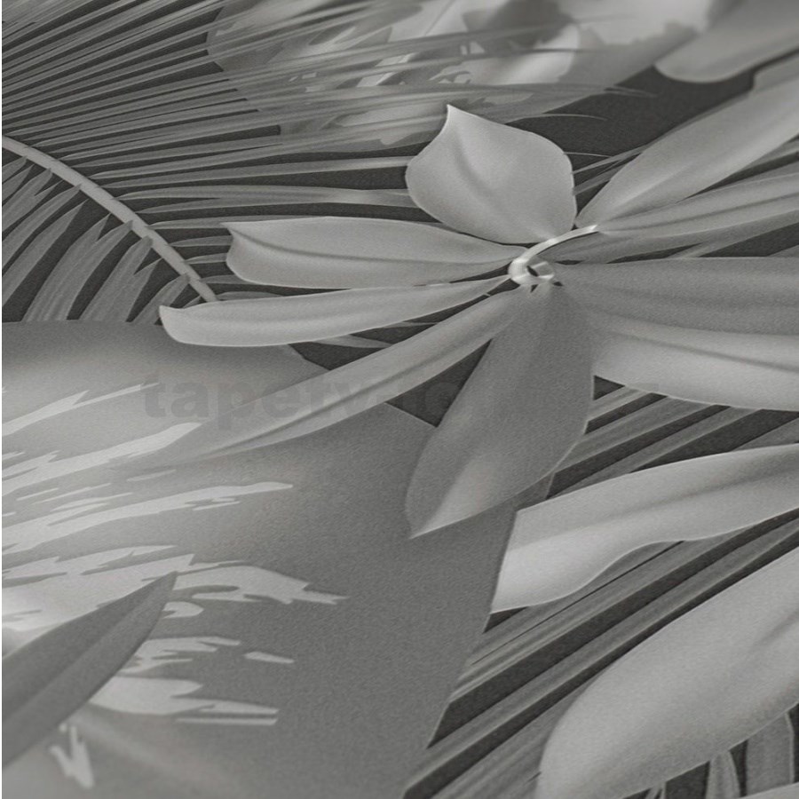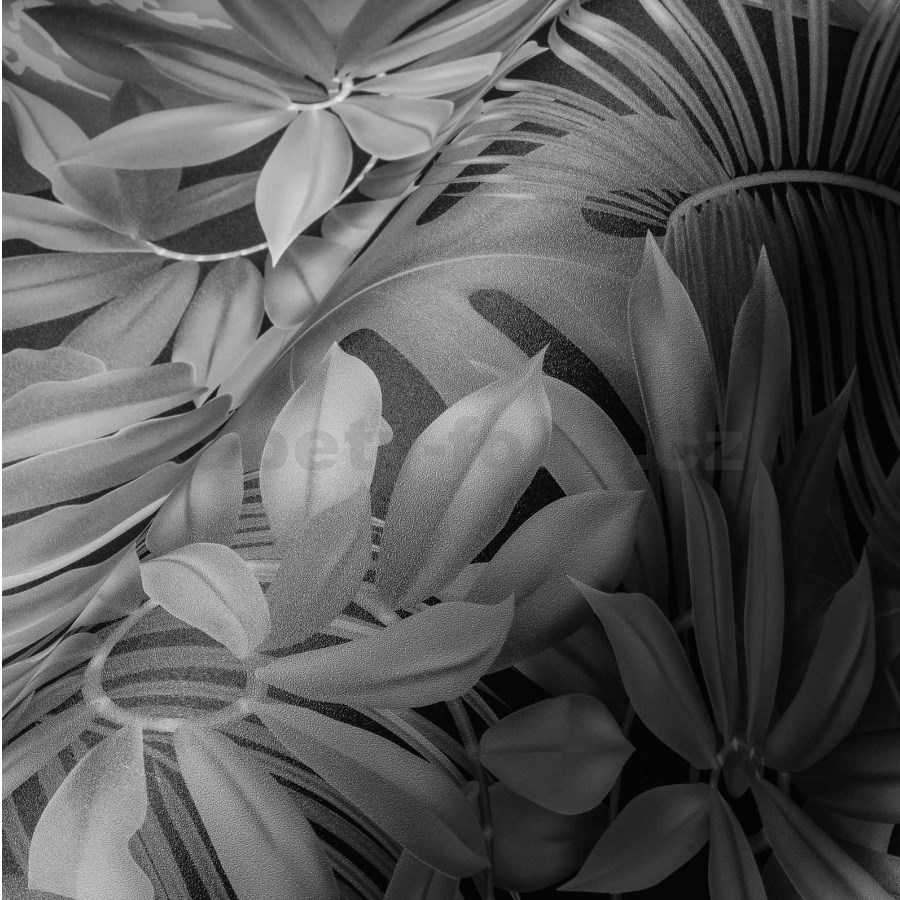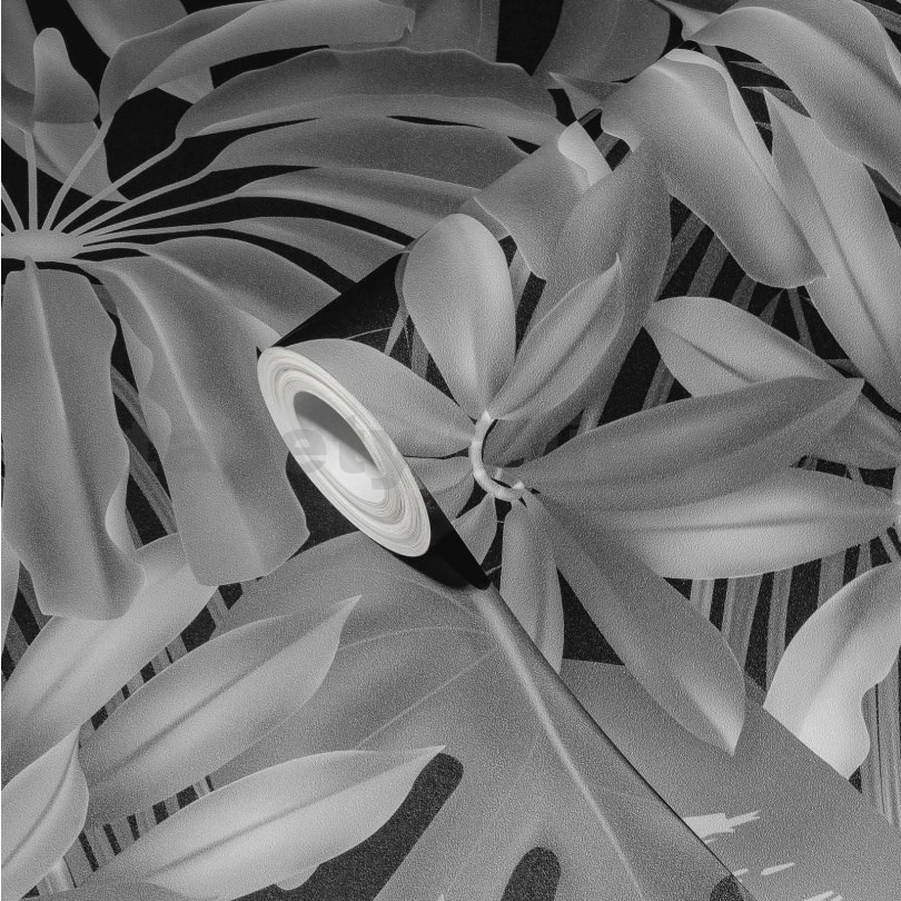 Vliesové tapety na zeď Pint Walls tropické listy šedé na černém podkladu