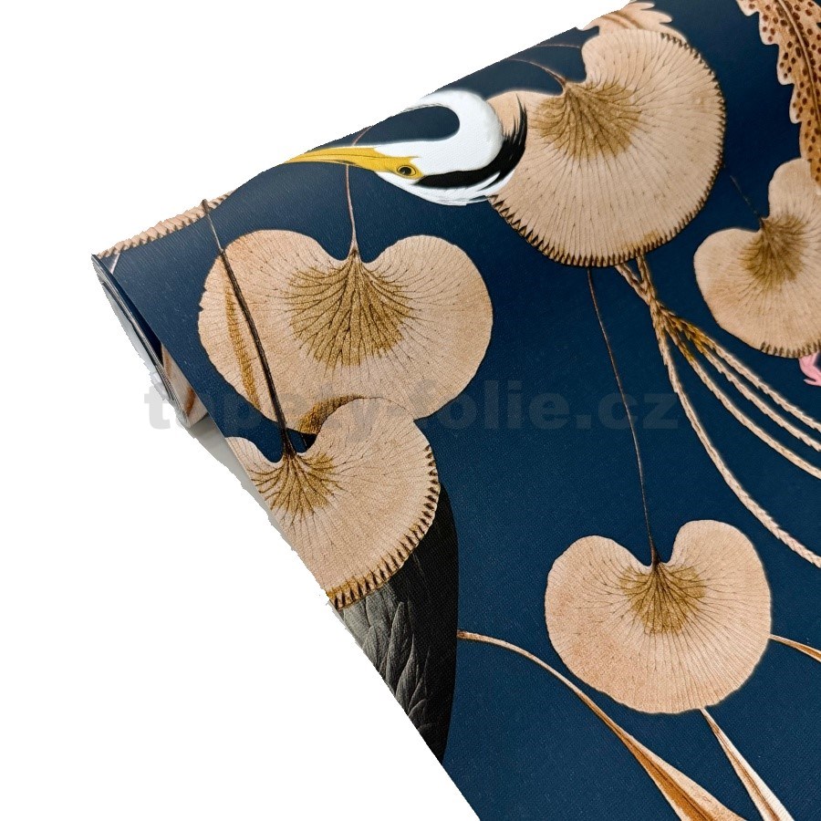 Vliesové tapety na zeď ptáci na modrém podkladu s listy