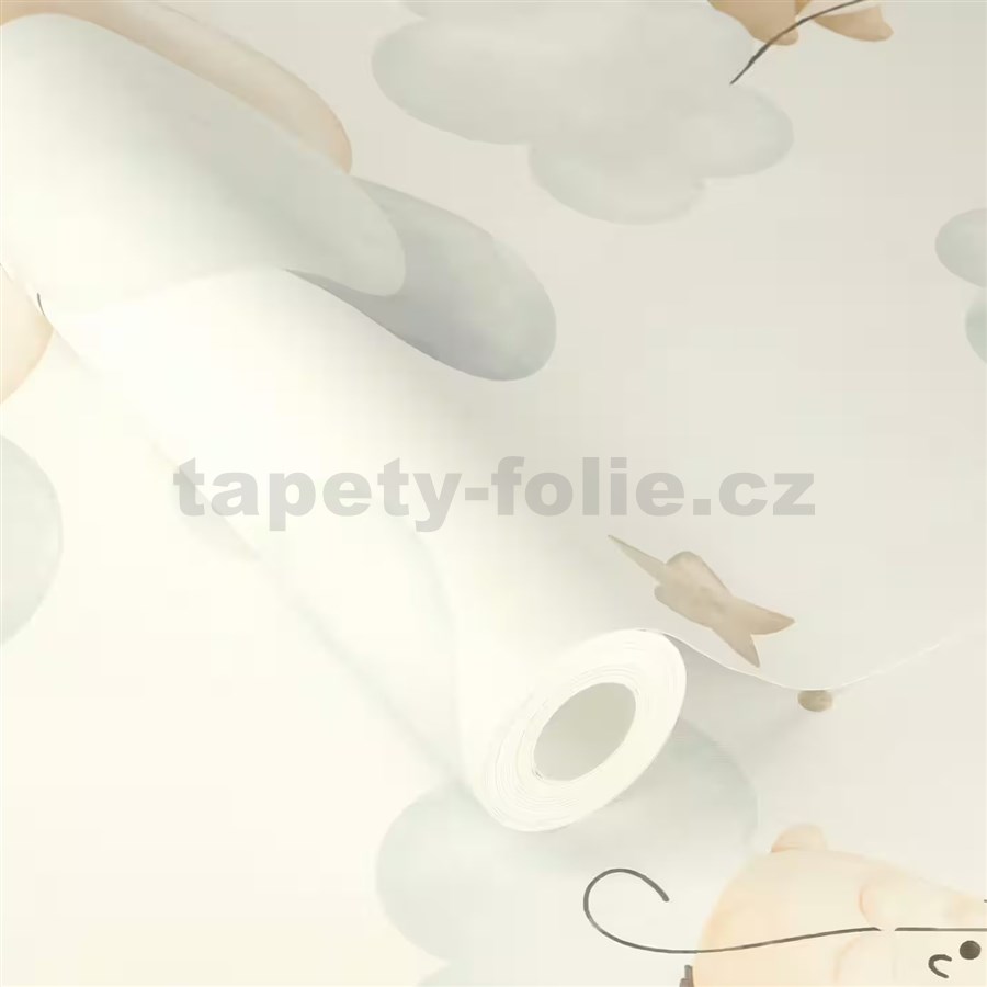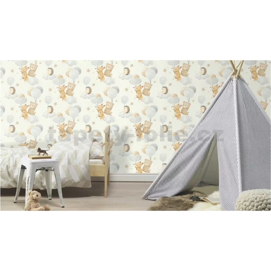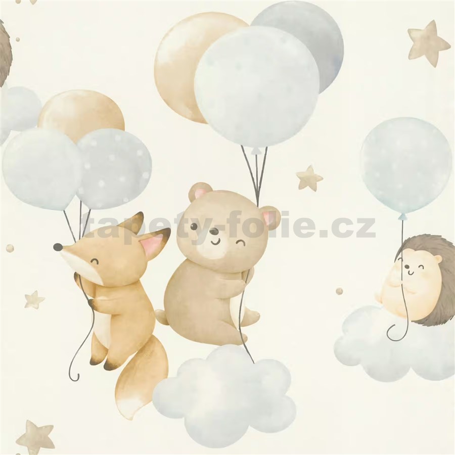 Vliesové tapety na zeď RASCH zvířátka a balónky béžovo-modré