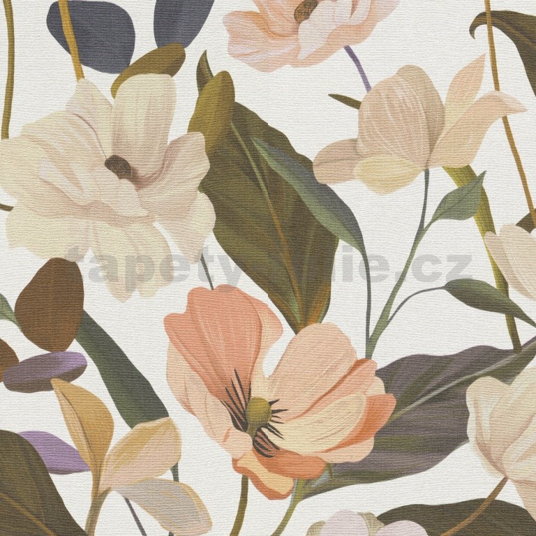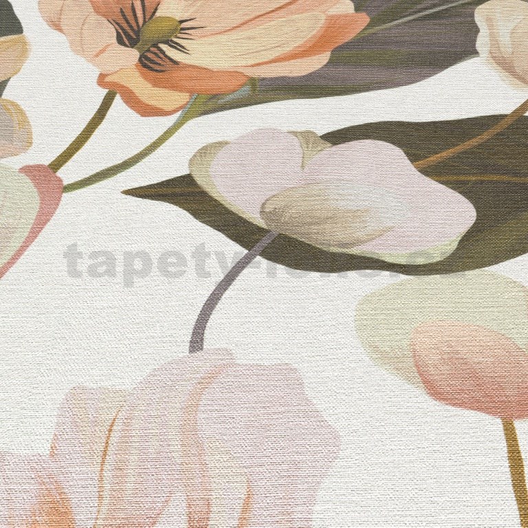 Vliesové tapety na zeď Secret Garden stylizované květy na bílém podkladu