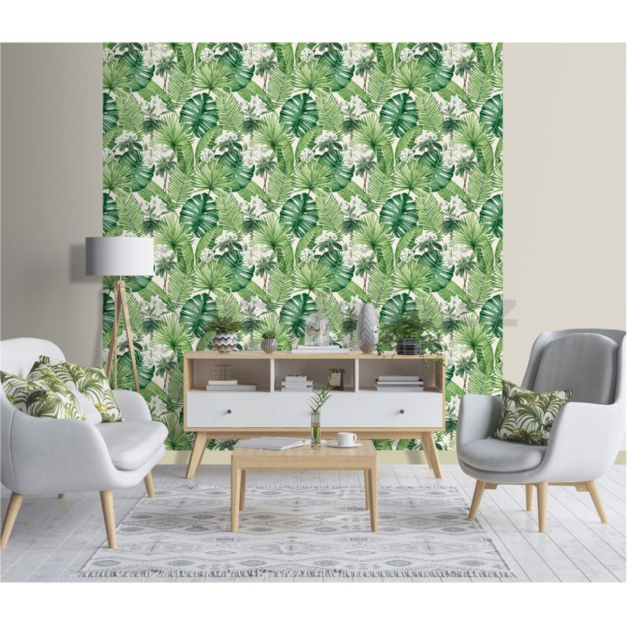 Vliesové tapety na zeď tropical listy na bílém podkladu